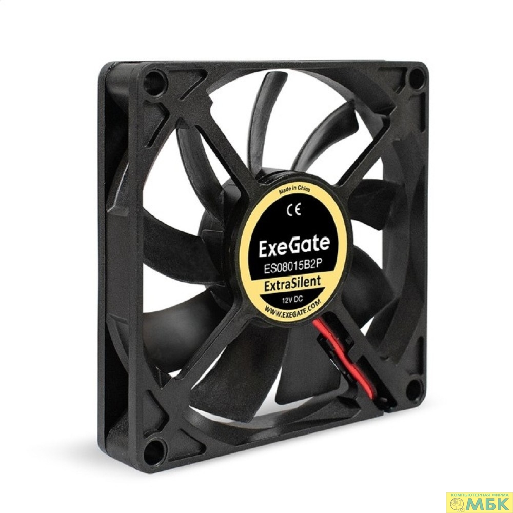 Exegate EX295236RUS Вентилятор 12В DC ExeGate ExtraSilent ES08015B2P (80x80x15 мм, 2-Ball (двойной шарикоподшипник), 2pin, 1700RPM, 17dBA)