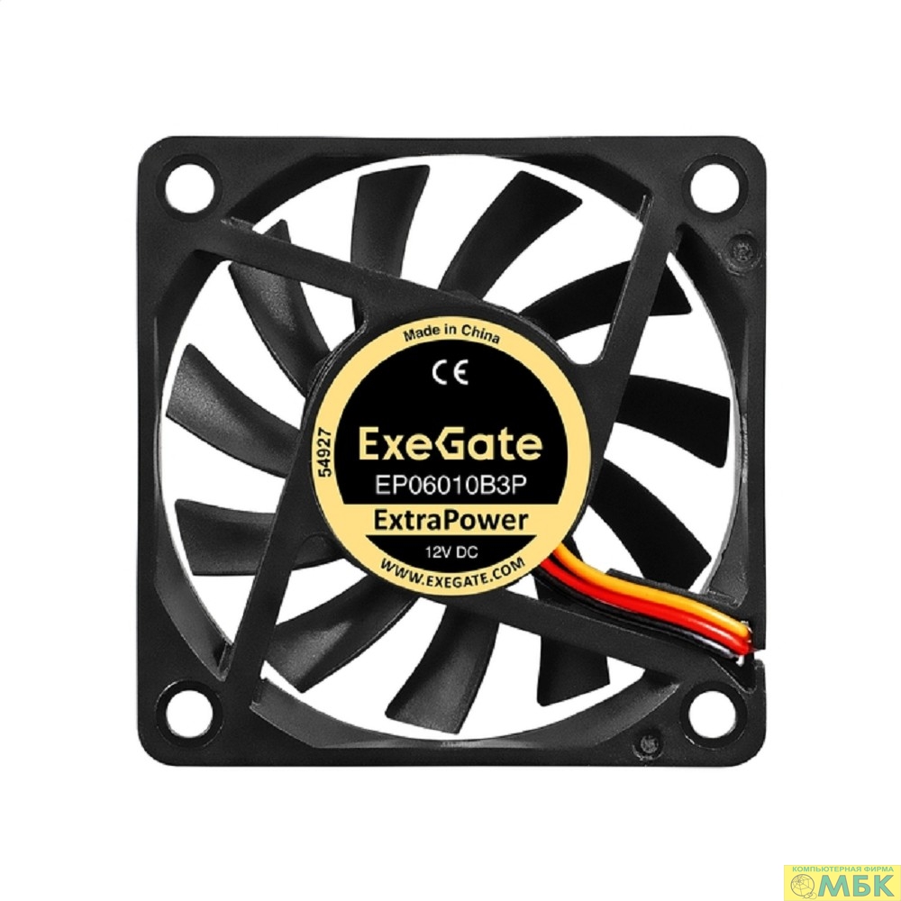 Exegate EX297028RUS Вентилятор 12В DC ExeGate ExtraPower EP06010B3P (60x60x10 мм, 2-Ball (двойной шарикоподшипник), 3pin, 3000RPM, 24dBA)
