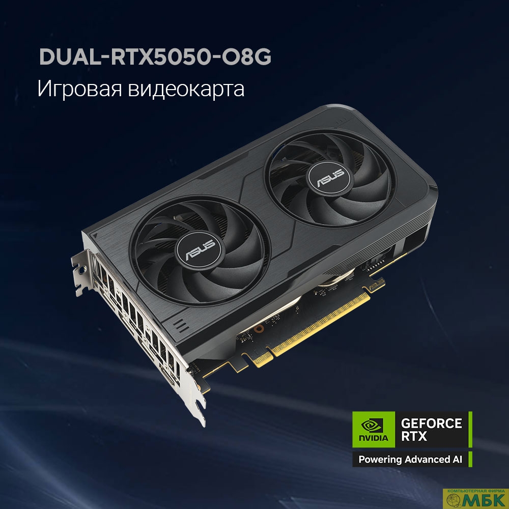 Видеокарта ASUS GeForce RTX5050 8Gb DDR6 128 bit 3*DP/HDMI 2 FAN (DUAL-RTX5050-O8G) RTL