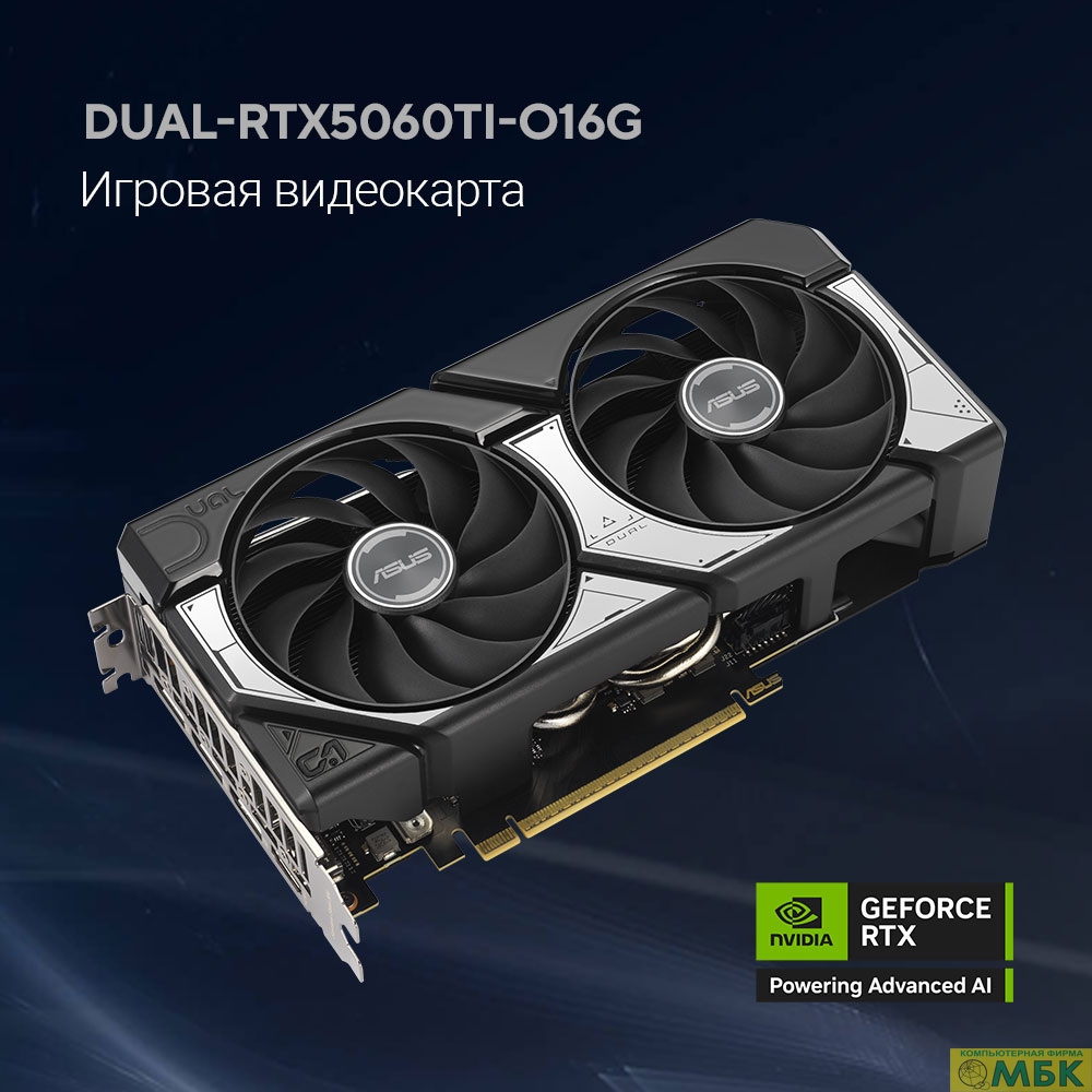 Видеокарта ASUS GeForce RTX5060TI 16Gb 128bit GDDR7 3*DP/HDMI (DUAL-RTX5060TI-O16G) RTL