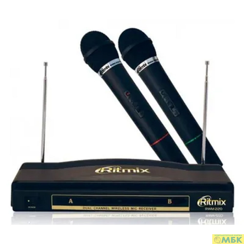 RITMIX RWM-220 {2 микрофона: 87.5 МГц - 92 МГц; раб. частоты: 100 Гц - 10 000 Гц;Чувств.: -30 дБ +/-3 дБ; пит. системы: AC 220 в / 500 мА}