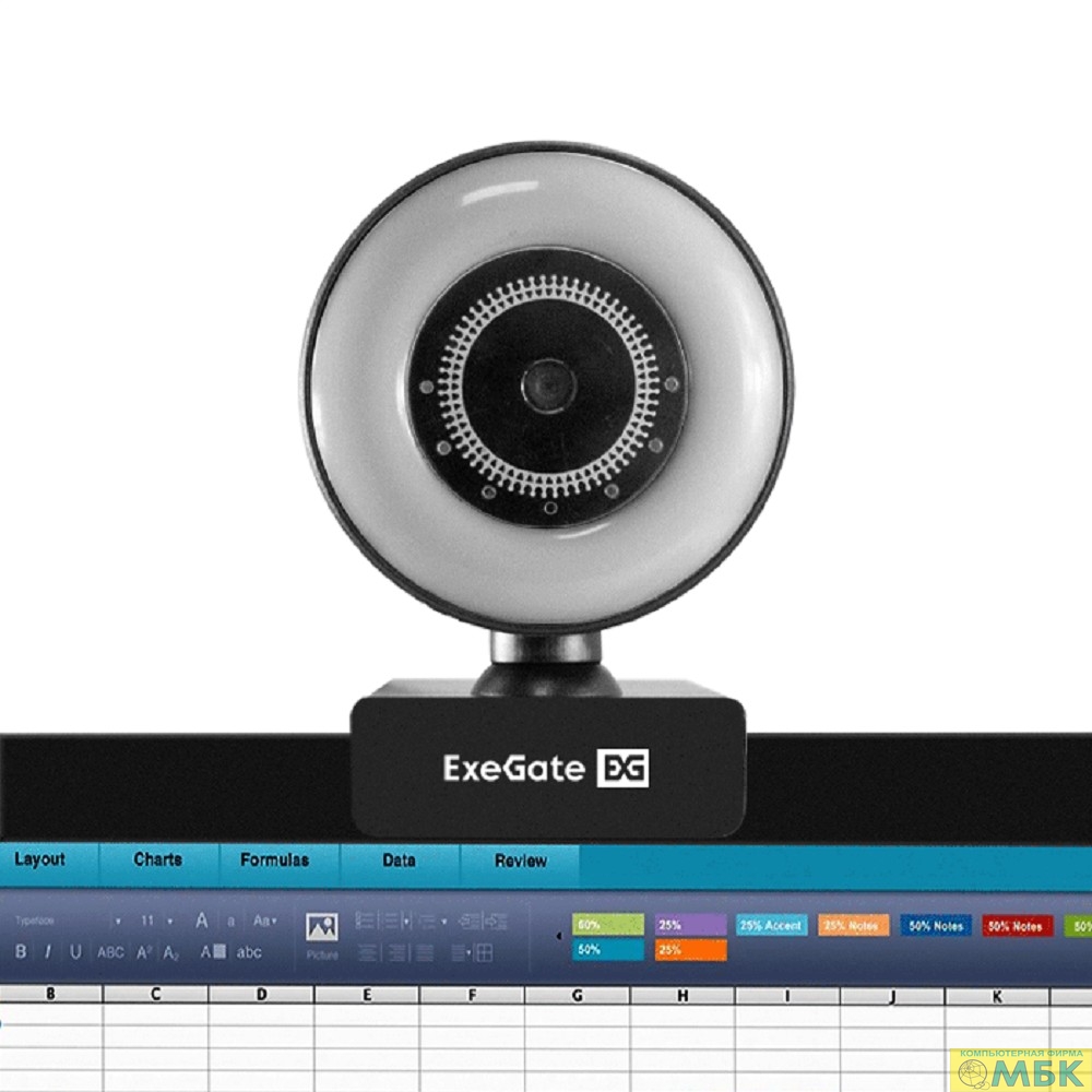 ExeGate Stream C940 2K (5Мп, 2560x1440, 30fps, H.264, ручной фокус, 4-линзовый объектив (стекло), микрофон с шумоподавлением, универсальное крепление, USB, кабель 1,5 м