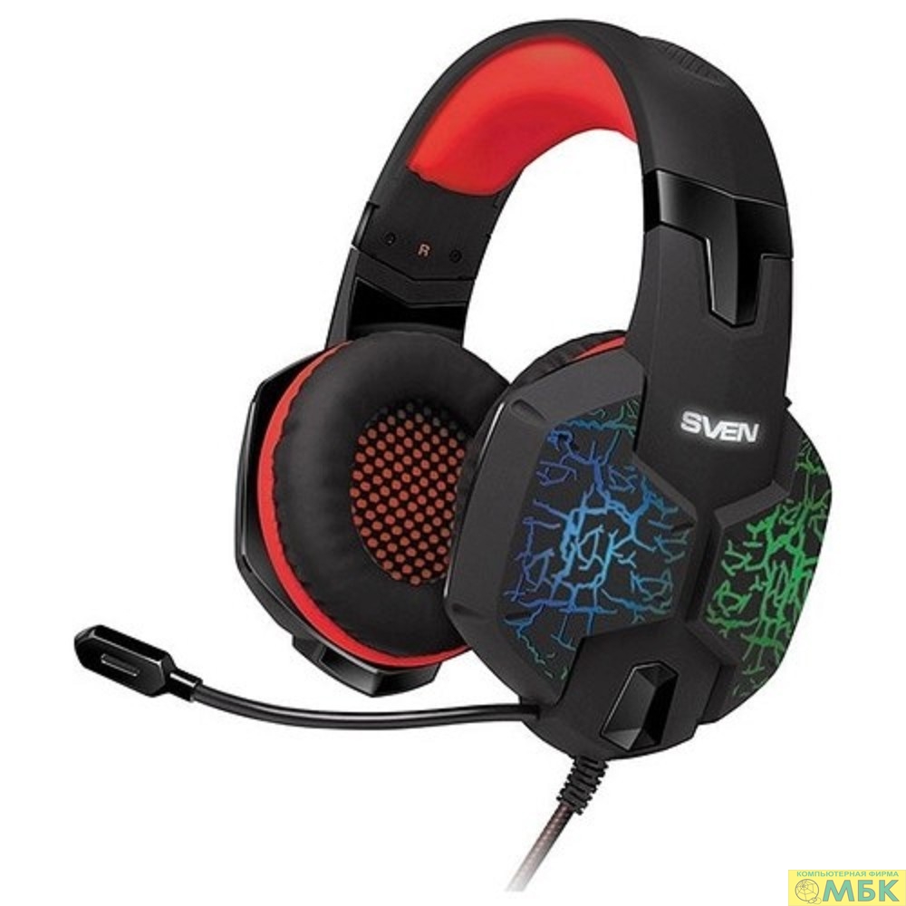 SVEN AP-U988MV черно-красный {с полноразмерными наушниками закрытого типа, встроенный регулятор громкости, подключение: 2 x mini jack 3.5 mm, частота воспроизведения 20-20000 Гц}
