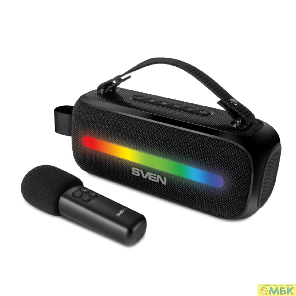 SVEN PS-255, черный (12 Вт, Bluetooth, FM, USB, караоке микрофон, 3600мА*ч)