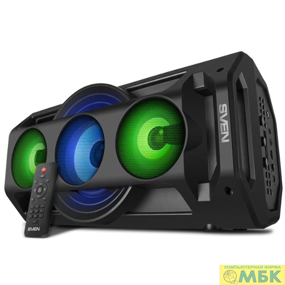 Портативная акустика 2.0 Sven PS-670 SV-020170 черная, 2x32.5 Вт (RMS), BT, FM, USB, microSD, LED-дисплей, пульт