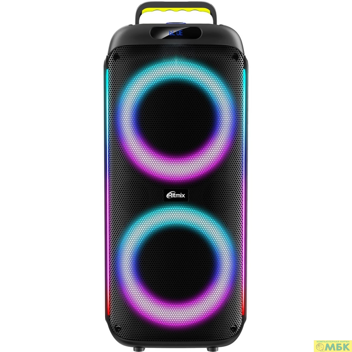 RITMIX SP-640B черный {Bluetooth, FM-радио, RGB-подсветка, AUX, USB, microSD (до 32 Гб, MP3), дисплей: LED, до 6 часов, вход: Jack 6.3 мм, Jack 3.5 мм}