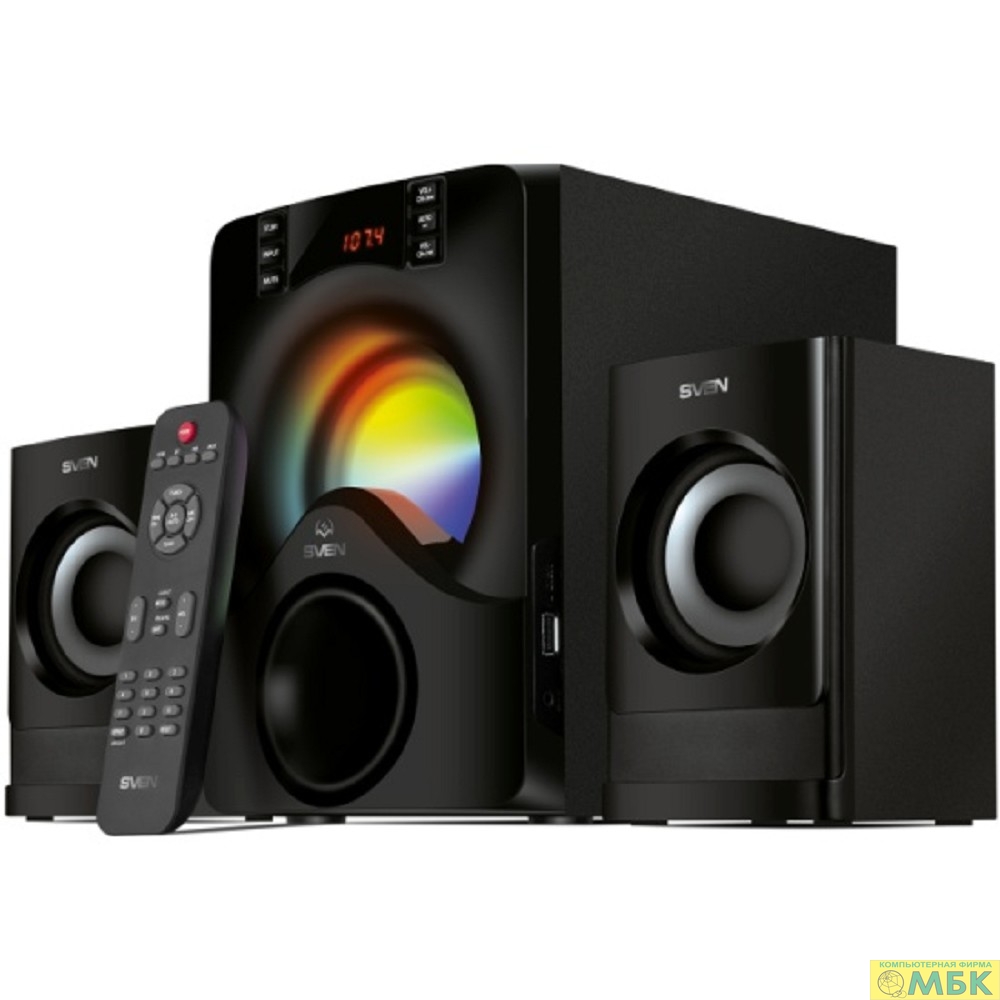 Колонки SVEN MS-315 2.1 чёрные (2x13W + 20W, Bluetooth, ПДУ, USB flash, LED-дисплей, FM-радио)