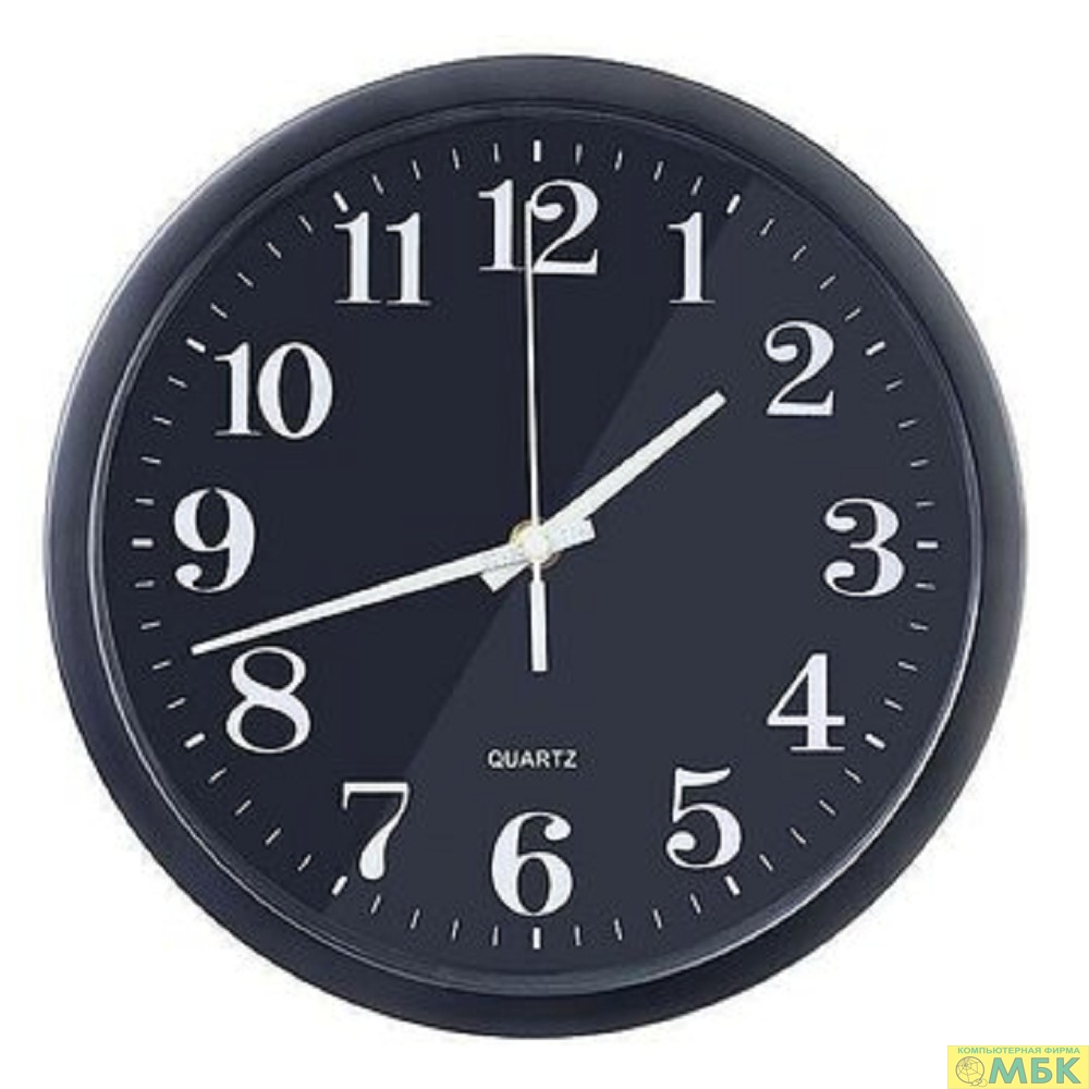 Perfeo Настенные часы "PF-WC-003", круглые д. 30 см, чёрный корпус / чёрный циферблат