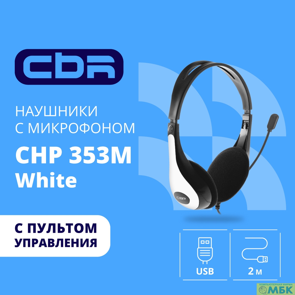 CBR CHP 353M White, Компьютерная гарнитура проводная стерео, микрофон с шумоподавл., накл. наушники, USB, кнопка выкл. микрофона, регул. громк., регул. оголовья, длина каб. 2 м, цвет чёрный-белый