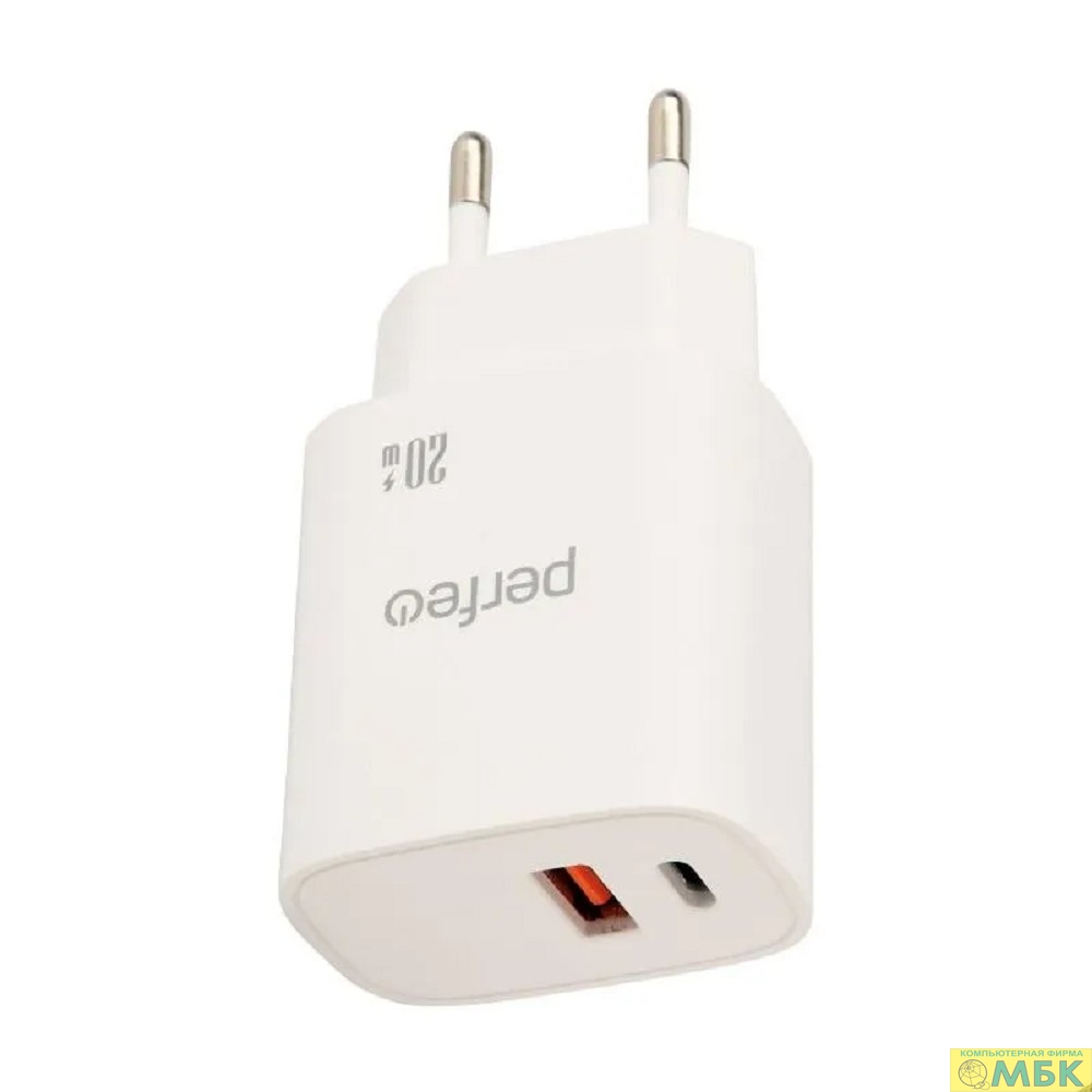PERFEO Сетевое зарядное устройство с двумя разъемами USB-A+TYPE-C, 20W, белый (I4661)