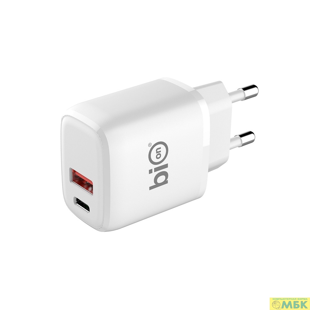 Bion Сетевое Зарядное Устройство, USB-A + USB-C, PowerDelivery, 18 Вт, белый [BXP-ADP-PD-AC-18W]